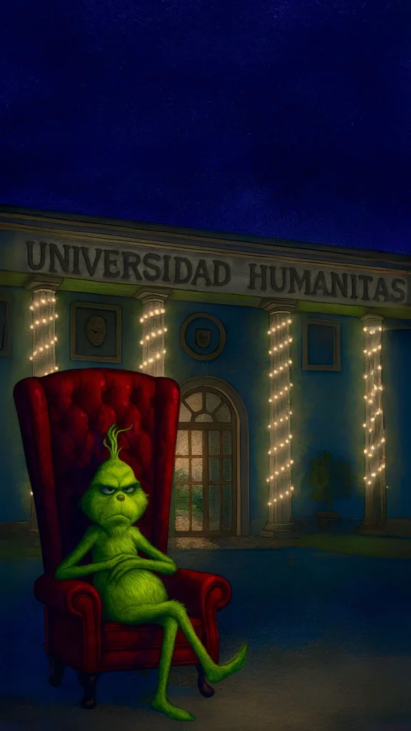 Si pensabas que ya lo habías visto todo, prepárate: la época más mágica del año ha llegado a Universidad Humanitas, y con ella, un evento único. Las luces comienzan a brillar, el aire se siente más fresco, el ambiente festivo y relajado se siente al caminar… Pero hay algo más… ¿o alguien más? Ya comienza a merodear un huésped muy singular (y un poco difícil, la verdad). ¿Crees que tienes un espíritu realmente navideño para ablandar el corazón de este invitado especial?